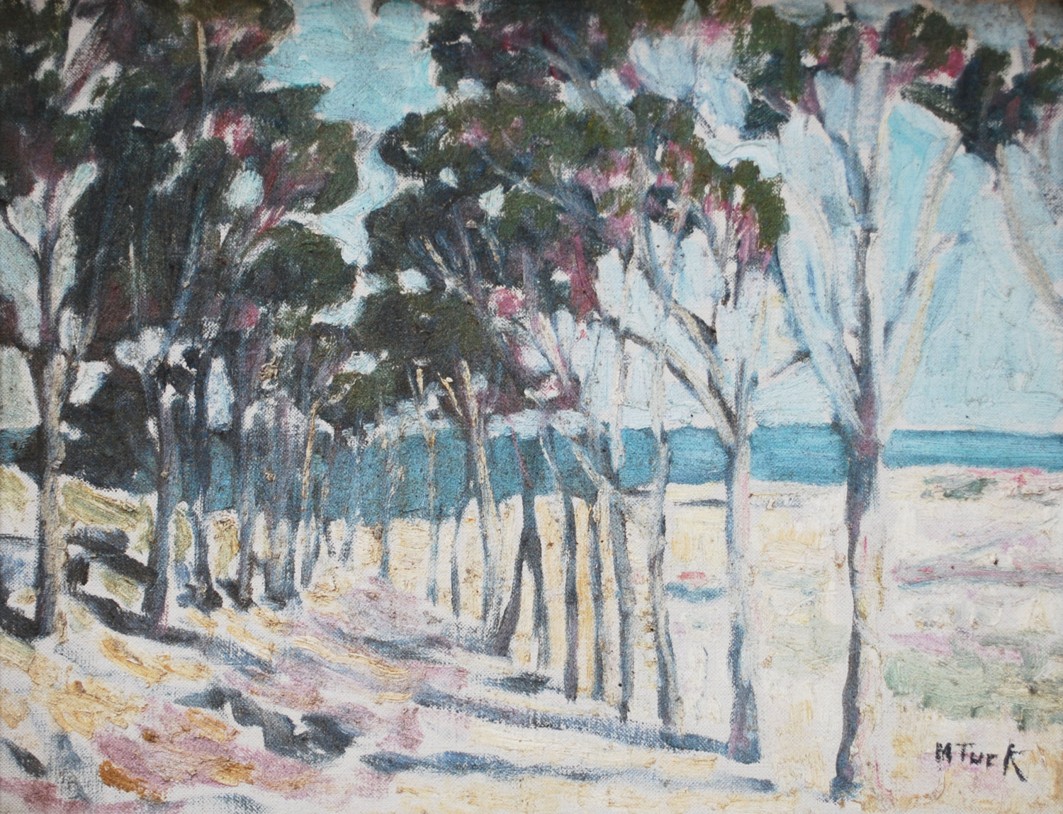 MARIE ANNE TUCK (1866-1947), TREE-LINED AVENUE, OIL ON CANVASBOARD, 27 X 35CM