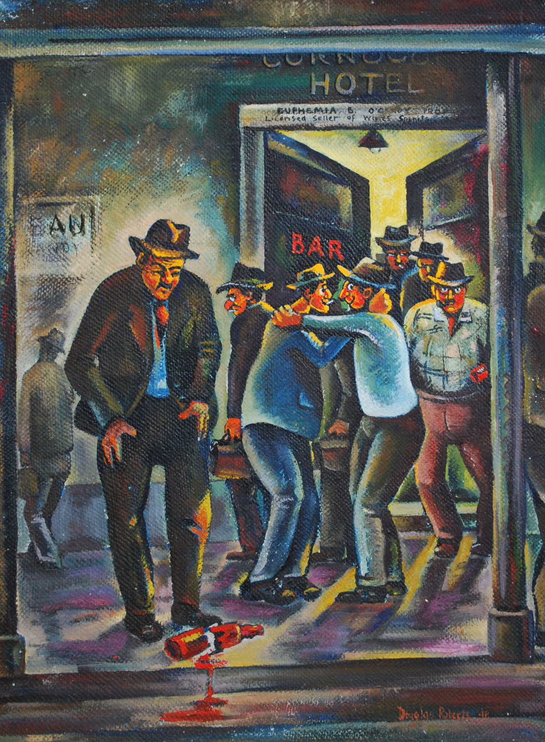 DOUGLAS ROBERTS (1919-76), 6PM CLOSE, 1946, OIL ON CANVASBOARD, 55 X 41CM