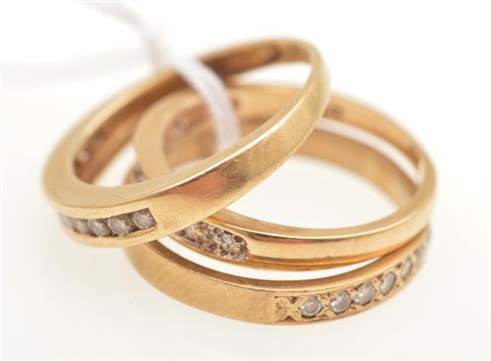 A SET OF THREE DIAMOND BANDS, IN 9CT GOLD