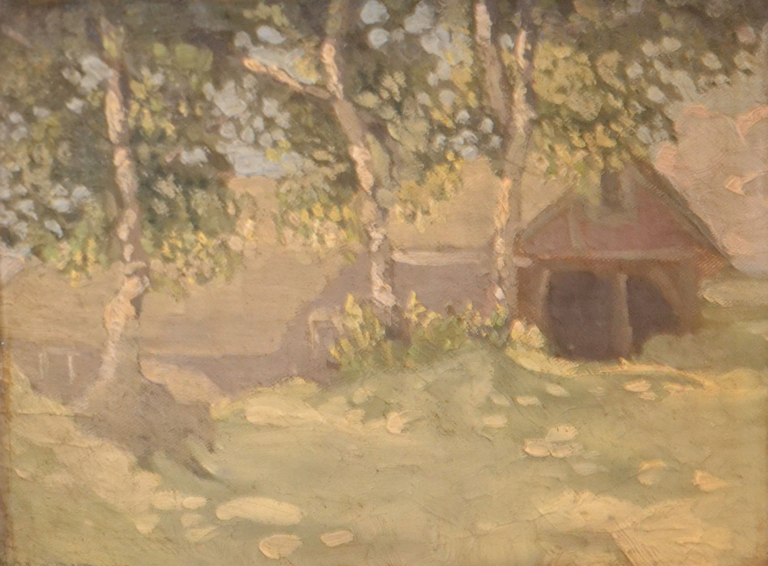 TOM GRIFFITHS, HOUSE IN SPRING, OIL ON CANVAS ON BOARD, 19 X 25CM