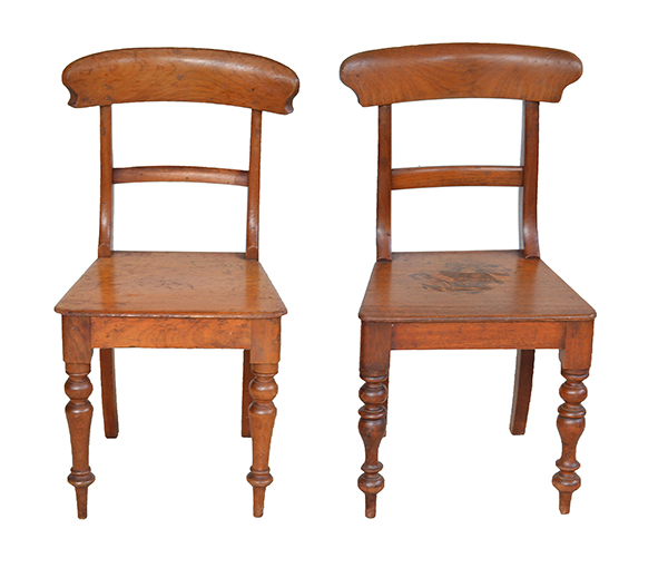 A HARLEQUIN SET OF SIX TASMANIAN SPADE BACK CHAIRS