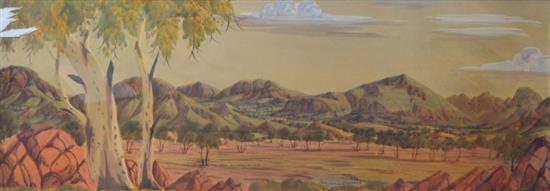 BENJAMIN LANDARA, CENTRAL AUSTRALIAN LANDSCAPE, WATERCOLOUR, 25 X 72 CM