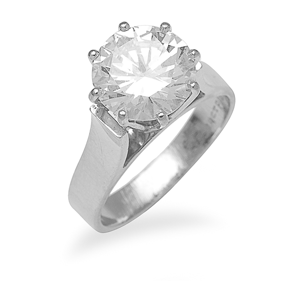 The round brilliant cut diamond of 3.15cts set in 18ct white gold, ring size M.