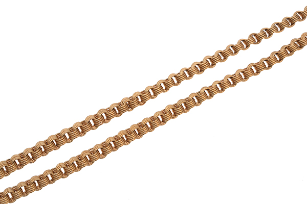 The fancy reeded belcher link necklace in 14ct gold, total length 770mm.