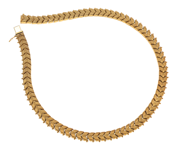 The arrow link necklace having brushed finish and bead detail, in 18ct gold, total length 440mm.