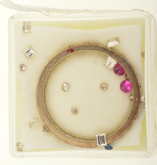A FULL CIRCLE DIAMOND BAND AND LOOSE GEMS, TESTED 9CT WHITE GOLD A/F