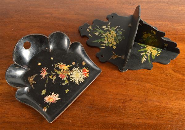 19TH CENTURY AUSTRALIAN CEDAR HAND MIRROR AND TWO PAPIER MACHE ITEMS