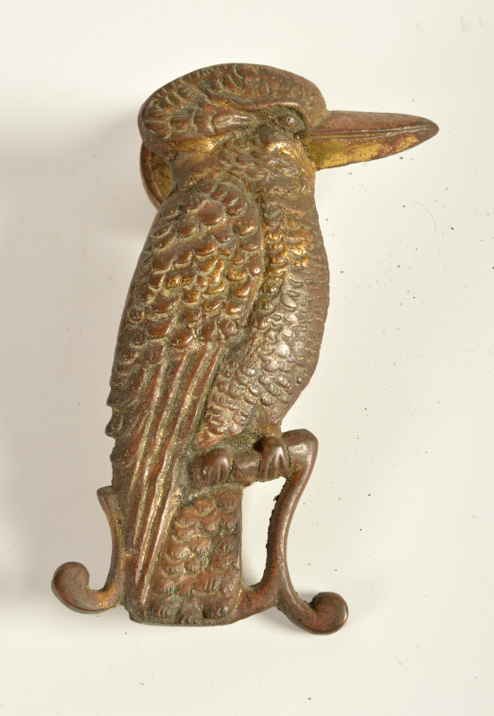 A VINTAGE BRASS KOOKABURRA SHAPED DOOR KNOCKER