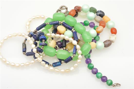 A GEMSTONE NECKLACE AND BRACELET INCLUDING FRESHWATER PEARL NECKLACE
