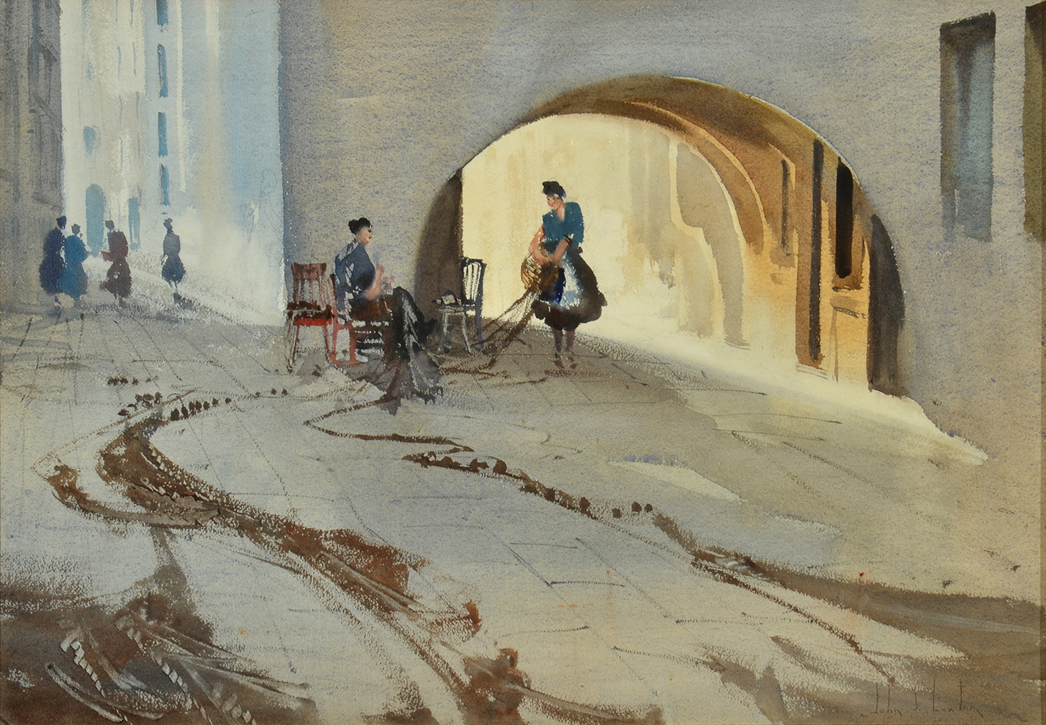 SYBIL ANDREWS (British/Canadian, 1898-1992) The Giant Cable 1931 linocut on oriental tissue laid on paper edition 10/50