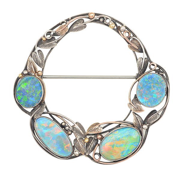 AN ARTS AND CRAFTS OPAL BROOCH ATTRIBUTED TO RHODA WAGER