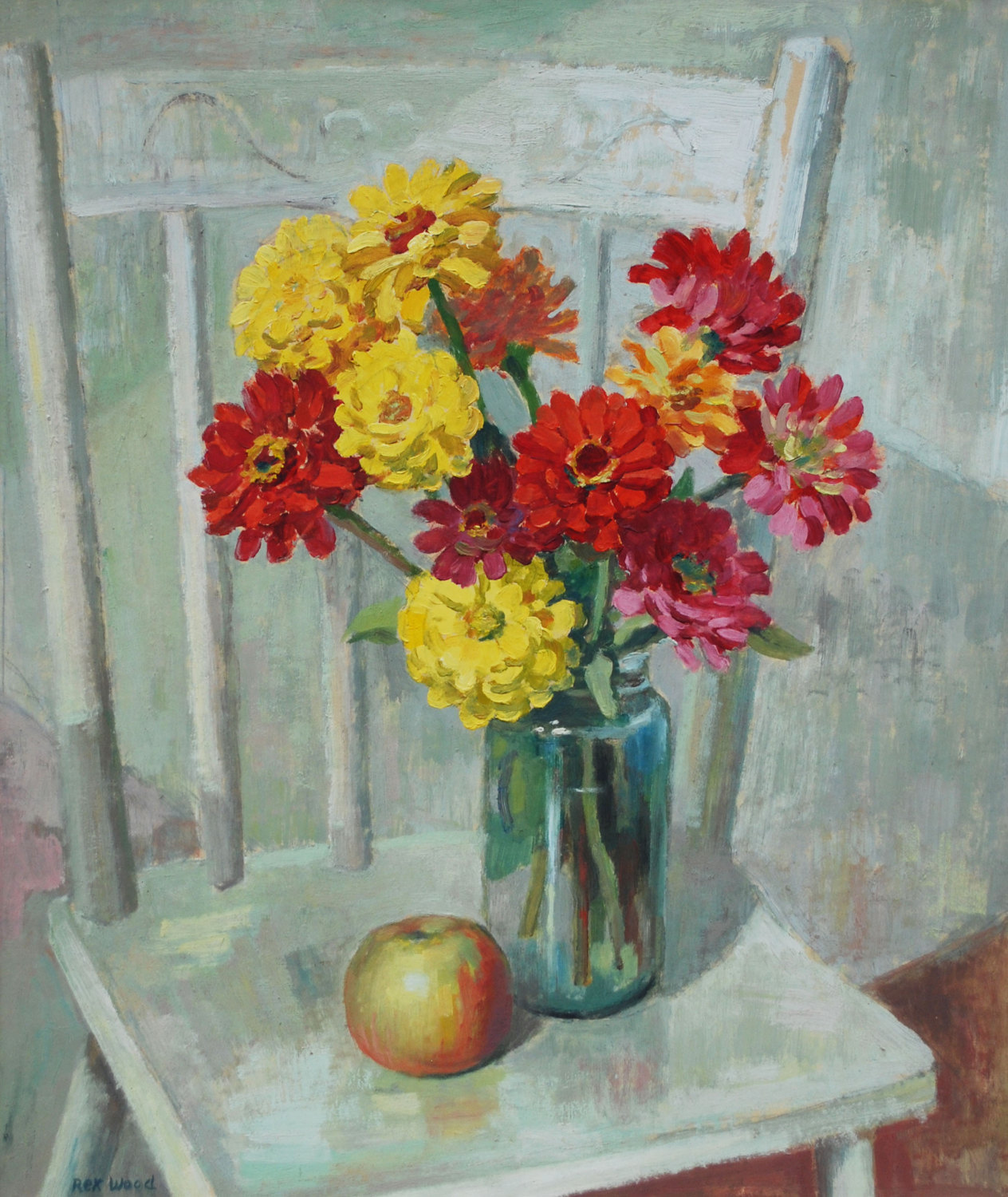 REX WOOD (1908-70), STILL LIFE WITH APPLE, OIL ON BOARD, 56 X 47CM