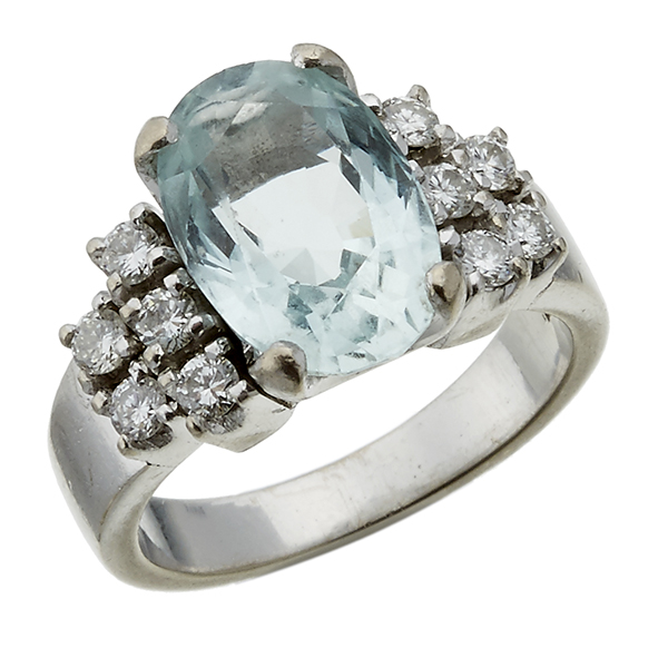 AN AQUAMARINE AND DIAMOND RING