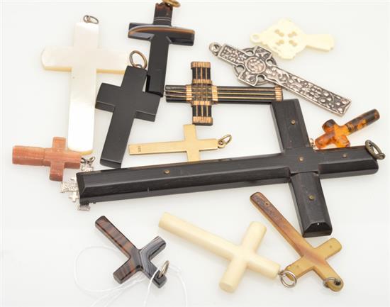 A COLLECTION OF CROSSES, INCLUDING BONE, WOOD AND AGATE