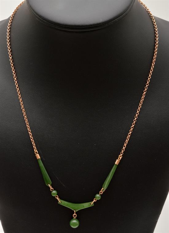A NEPHRITE NECKLACE, IN 9CT ROSE GOLD