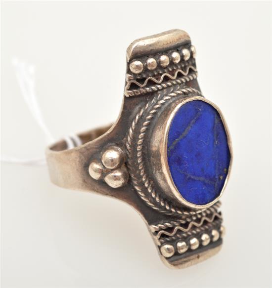 A RING SET WITH LAPIS LAZULI, IN STERLING SILVER
