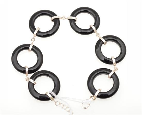 AN ART DECO STYLE ONYX BRACELET, IN STERLING SILVER