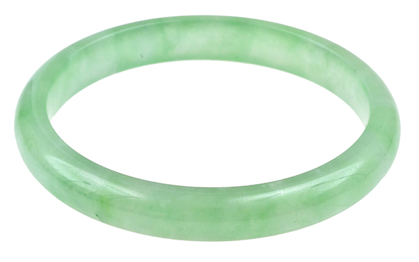 The half round bangle of icy green hue with polished finish, 70mm diameter.