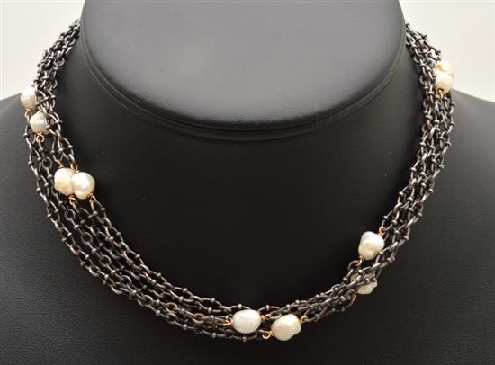 A PEARL AND GUNMETAL NECKLACE