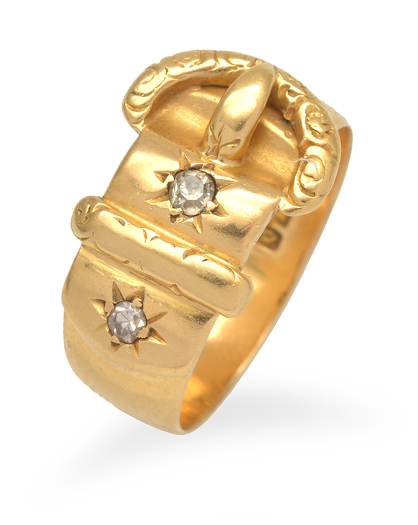 Set with two old cut diamonds, mounted in 18ct gold, hallmarked, ring size P.