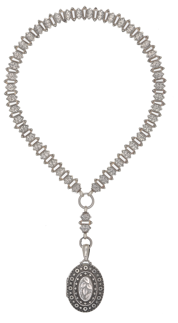 A VICTORIAN STERLING SILVER LOCKET AND COLLAR