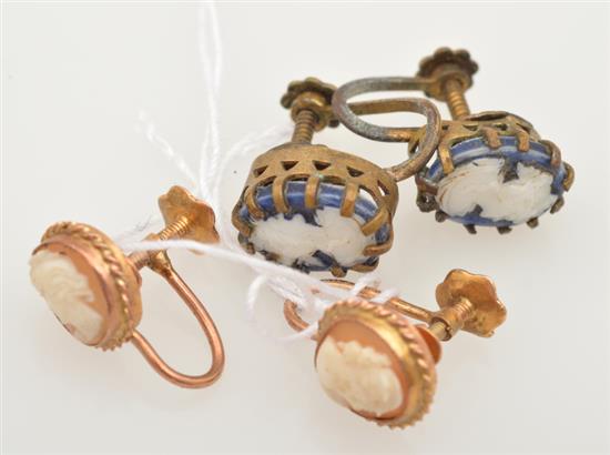 TWO PAIRS OF CAMEO SCREW BACK EARRINGS ONE IN 9CT GOLD