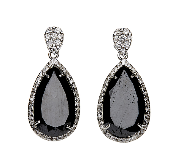 A PAIR OF BLACK DIAMOND AND WHITE DIAMOND EARRINGS
