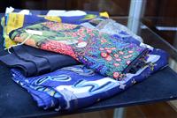 A COLLECTION OF SIX SILK SCARVES INCLUDING CHRISTIAN DIOR, JEAN PATOU AND LAGERFELD