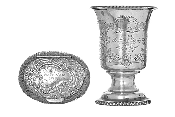 Provenance: These cups were awarded in the 1850s by the Royal Hawaiian Agricultural Society as a prize in various growing categories. This cup was awarded to Arch Archer by the R.H.A Society for the best Tobacco Then inscribed verso;
