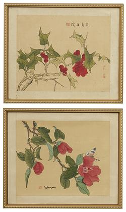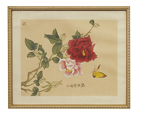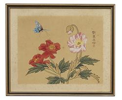 Depicting finely painted flowers and butterflies on rice paper. Approx 25.5 x 20cm each. (6)