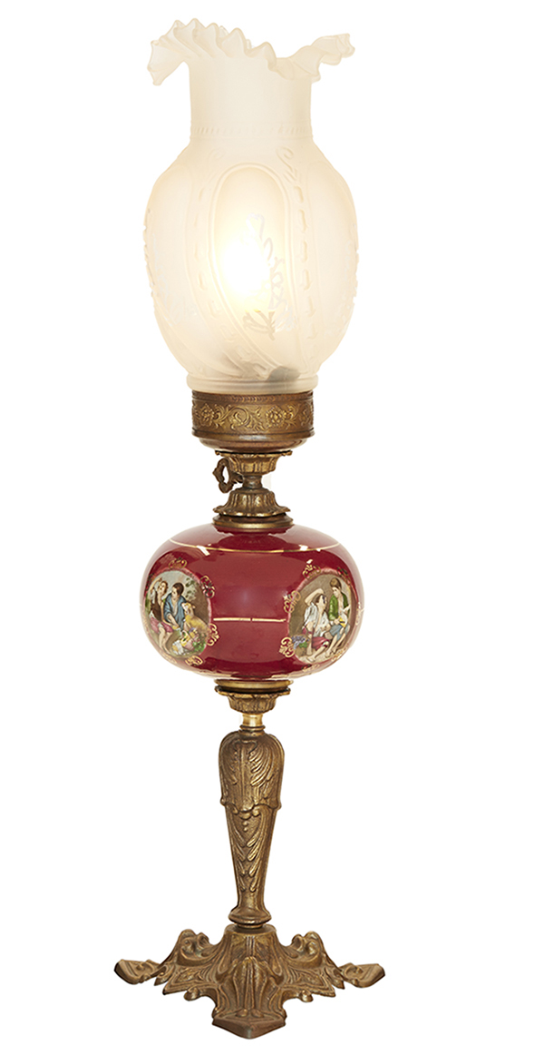 A VICTORIAN OIL LAMP, NOW ELECTRIED