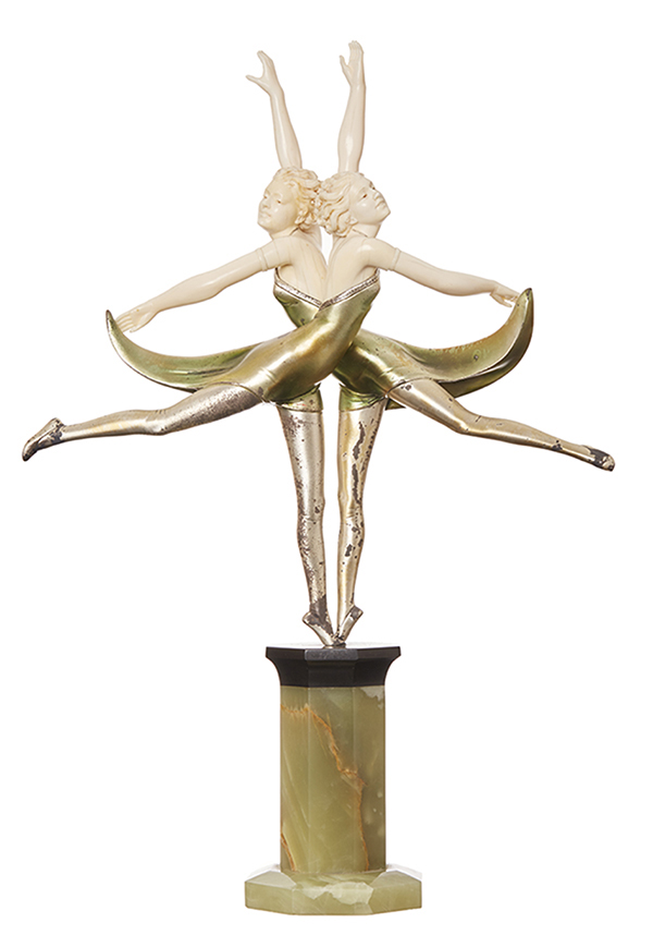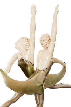 A RARE FERDINAND PREISS (1882-1943) ART DECO COLD PAINTED BRONZE AND IVORY 'BUTTERFLY DANCERS' FIGURE, CIRCA 1925