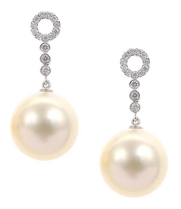 A PAIR OF SOUTH SEA PEARL AND DIAMOND EARRINGS