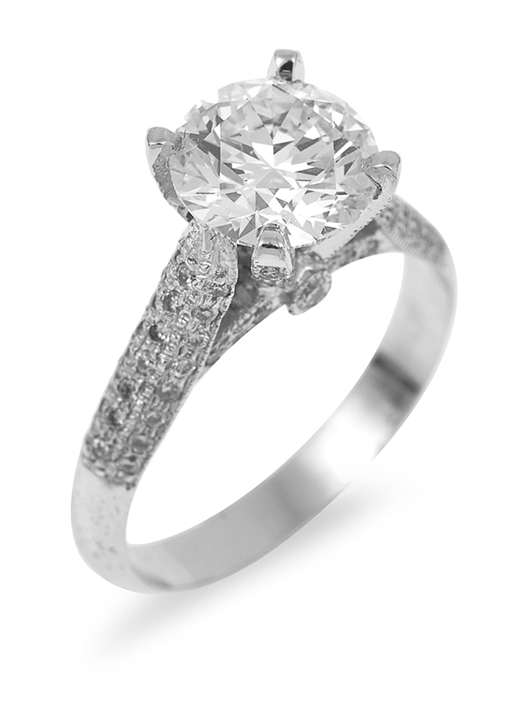 The round brilliant cut diamond of 1.50cts, having further diamond detail throughout, mounted in 18ct white gold, ring size J.