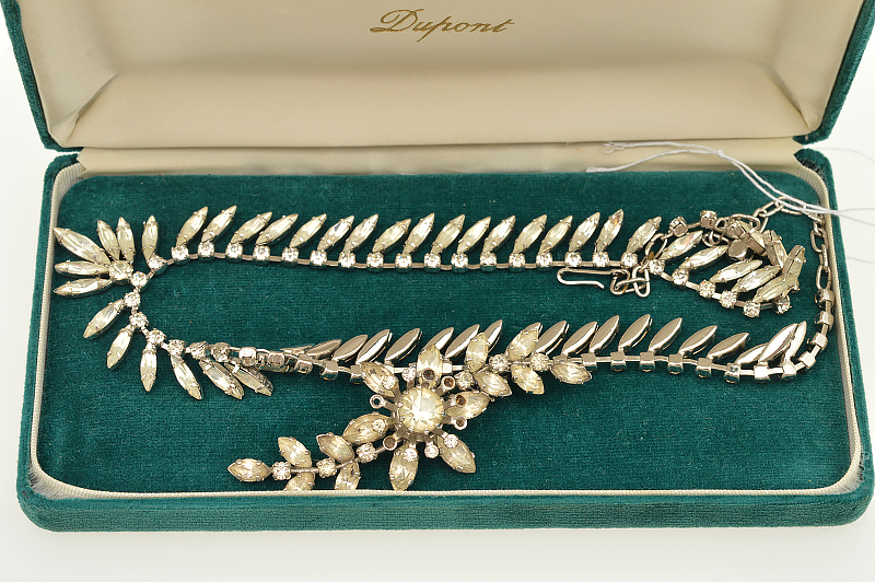 A VINTAGE COSTUME NECKLACE AND THREE BROOCHES A/F