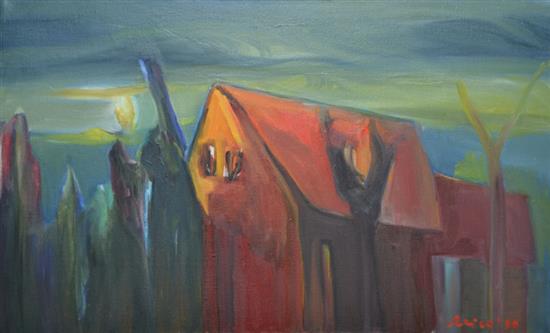 ALICE BLANCH CHEHOVSKI, HOUSE IN LANDSCAPE, OIL ON CANVAS, 55 X 91 CM