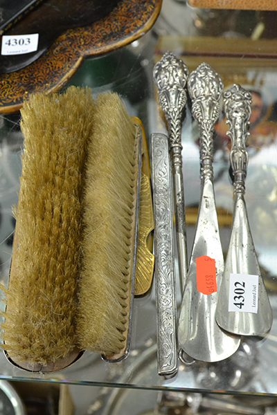 A GROUP OF SILVER AND SILVER PLATE DRESSING TABLE ITEMS