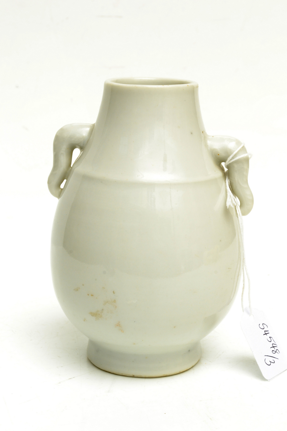 Ovoid in form, flanked by two small elephant head lugs, 12 cm high
