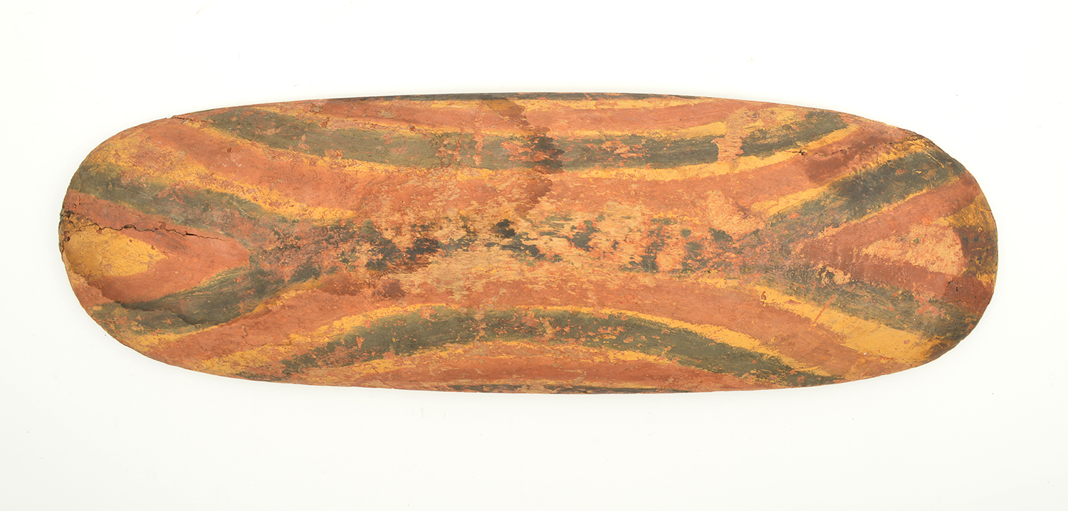 decorated with traditional designs in ochres.
