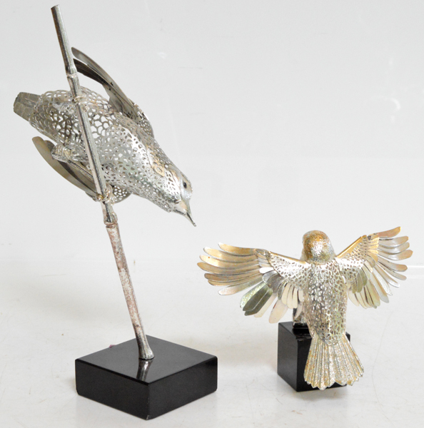 TWO CHRISTOFLE SILVER PLATE PIERCED BIRD FIGURINES
