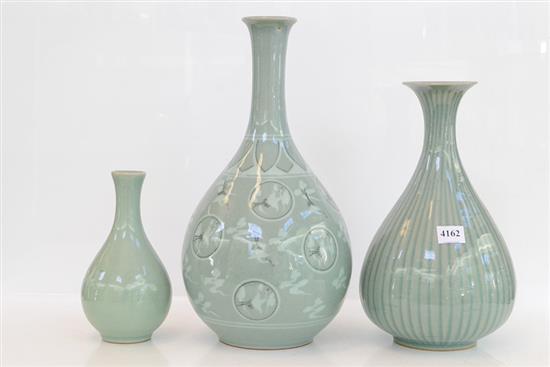 THREE KOREAN CELADON BOTTLE VASES