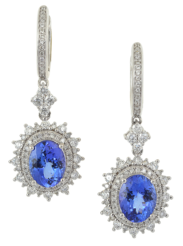 A PAIR OF TANZANITE AND DIAMOND DROP EARRINGS
