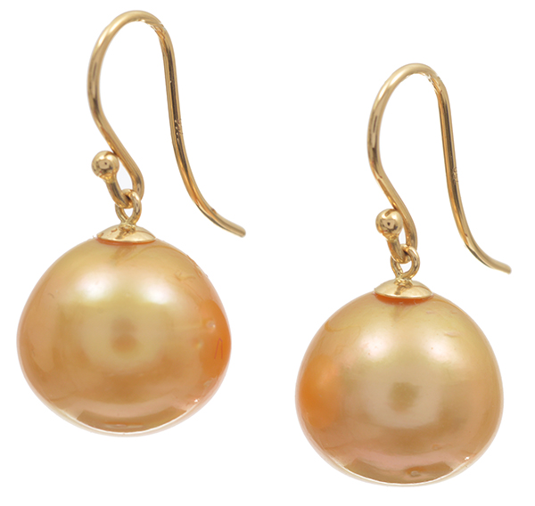 A PAIR OF GOLDEN SOUTH SEA PEARL EARRINGS