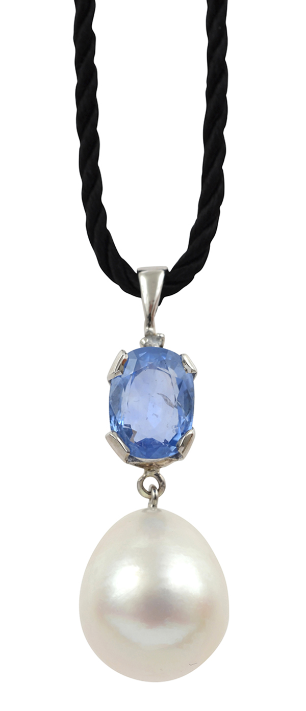 A SOUTH SEA PEARL AND CELYON SAPPHIRE PENDANT