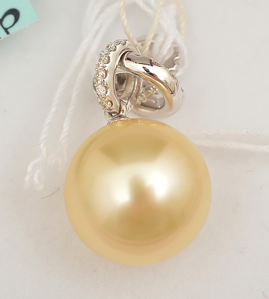A GOLDEN SOUTH SEA PEARL AND DIAMOND PENDANT IN 18CT WHITE GOLD