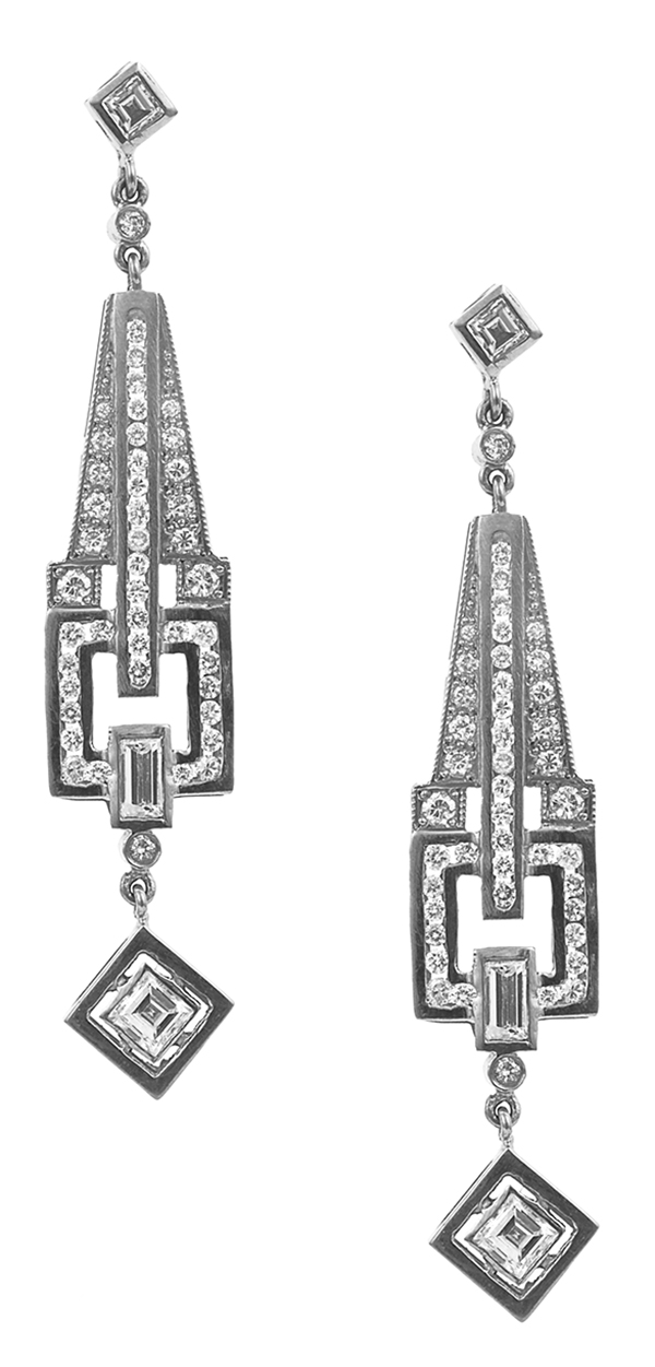 A PAIR OF ART DECO STYLE DIAMOND DROP EARRINGS
