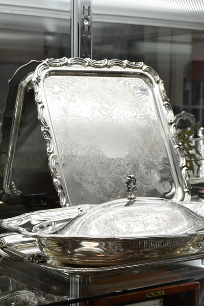 THREE PIECES OF SILVER PLATE INCL. TRAY AND ENTREE DISH