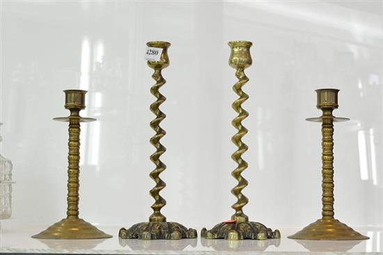 FOUR BRASS CANDLESTICKS