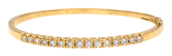 The oval hinged bangle featuring fifteen round brilliant cut diamonds totalling 1.50cts, mounted in 14ct gold.