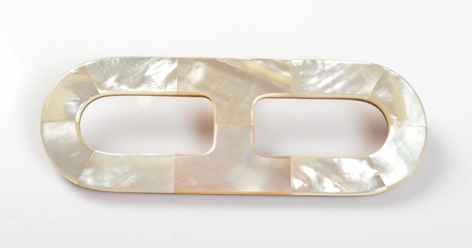 Styled in mother-of-pearl and wood, total length 11cm.